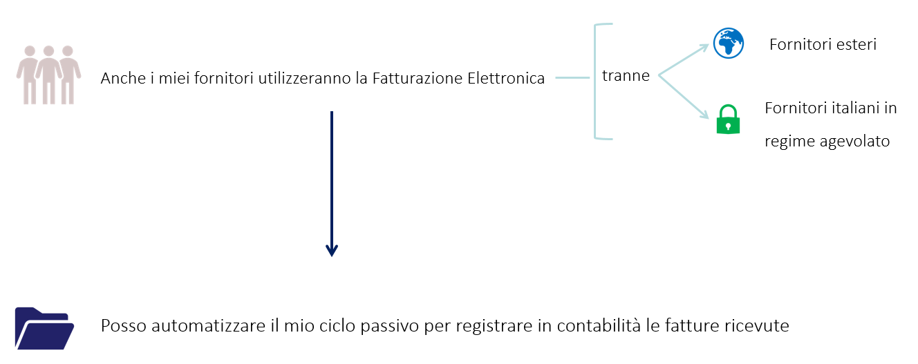 Con l'ingresso della fatturazione elettronica anche i miei fornitori saranno tenuti a modificare metodo e formato di emissione delle fatture, eccezione fatta per i fornitori esteri e quelli italiani che rientrano in un regime agevolato.