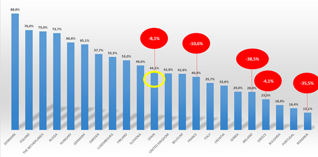 L’Italia risulta essere ultima tra i grandi paesi europei dove solo il 35,7% delle imprese paga alla scadenza, ben lontana dai dati dei paesi capolista*
